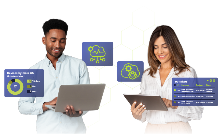 Complete IT management: connected and unified remote monitoring and management, ticketing, quoting, cybersecurity, and more. |